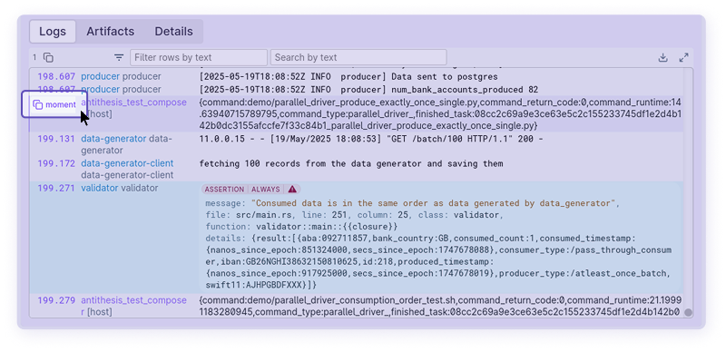 - If you need access to a reproduction, you can start a Multiverse Debugging session by copying the relevant moment from the logs. This gives you shell access to a reproduction of your system at the moment of failure.